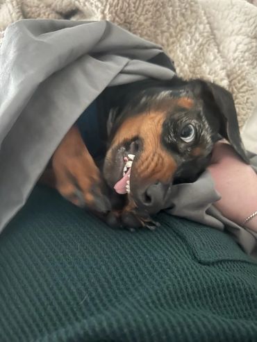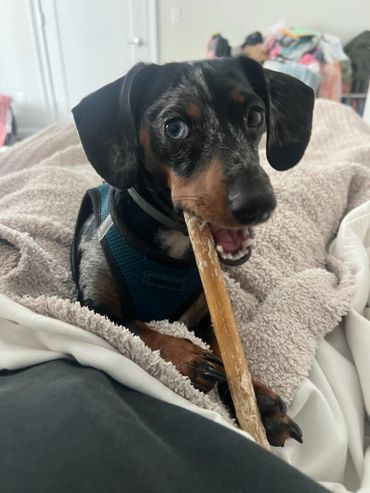 Moe lost his life last year in a digging accident. Currently, his family is waiting to adopt Moe's nephew, Clyde.